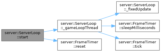 References _frameCount, _frameTimer, _gameLoopThread(), _loopThread, _skippedFrames, _timeAccumulator, LOG_ERROR, LOG_INFO, LOG_WARNING, and server::FrameTimer::reset().